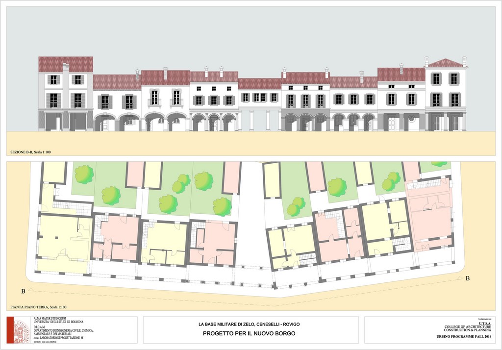 BORGO NUOVO. Progetto per il recupero e la trasformazione della ex base aeronautica di Zelo (RO) in un piccolo borgo dedito allo sviluppo delle eccellenze locali e al Turismo Lento. Il progetto è stato studiato con gli studenti del College of Architecture della UTSA (University of Texas at San Antonio) e gli studenti della Facoltà di Ingegneria della Università di Bologna. STUDIO PAOLETTI