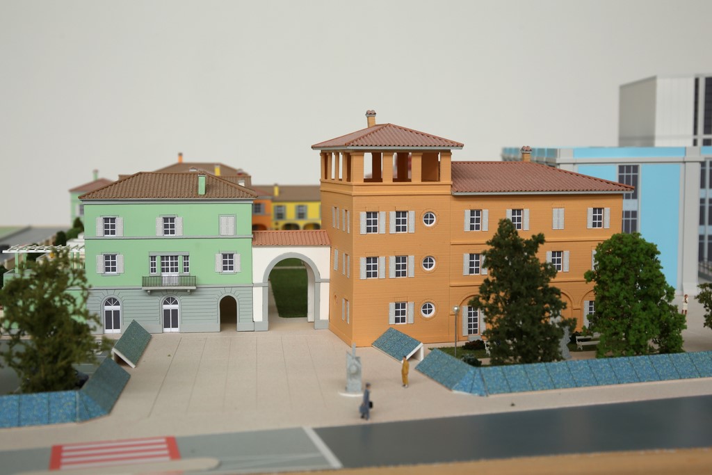 GIARDINO DELLE ARTI. A Pieve di Cento (BO) 16 nuovi edifici residenziali cingono con i loro portici un giardino di moderne sculture. STUDIO PAOLETTI - VENTURINGEGNERIA – STUDIO CAMPANINI