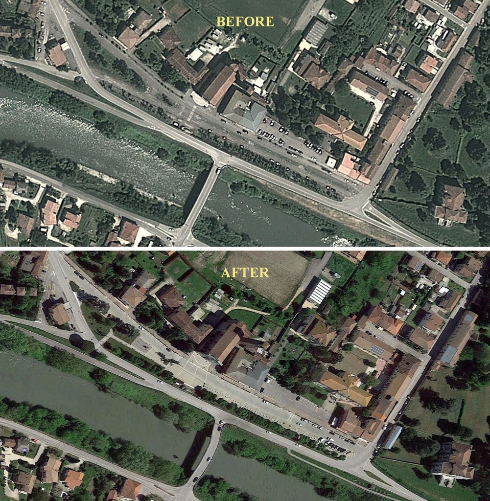 PIAZZA DANTE ALIGHIERI. A Canda (RO) la piazza centrale si trasforma in un grande spazio pedonale che ristabilisce il giusto equilibrio tra uomo e macchina. STUDIO PAOLETTI - VENTURINGEGNERIA – MASSARENTE ARCHITETTURA